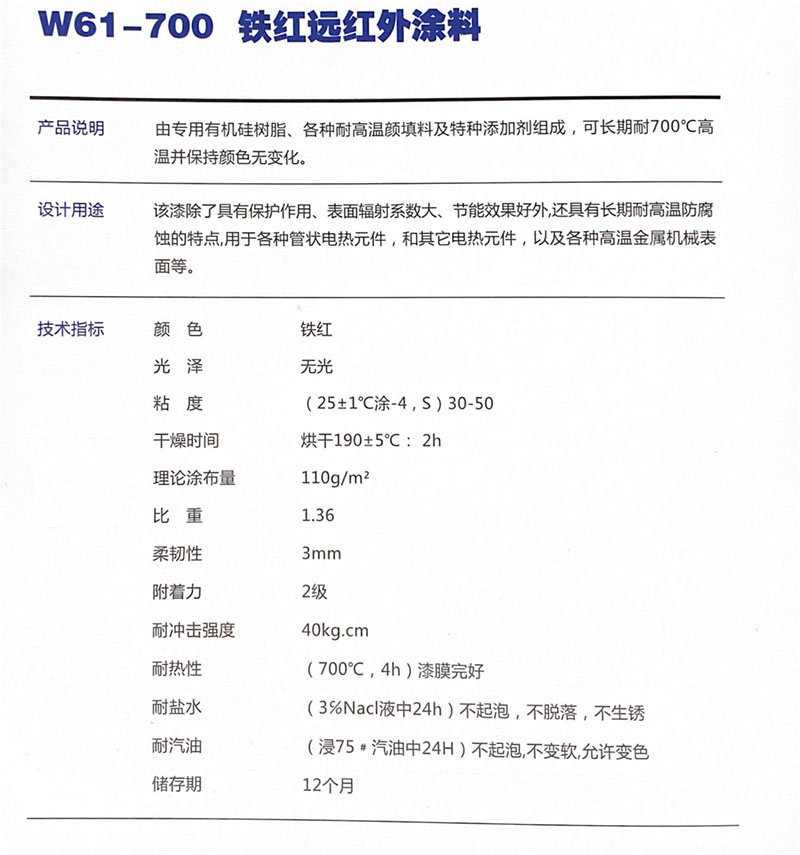 W61-700鐵紅遠紅外耐高溫涂料